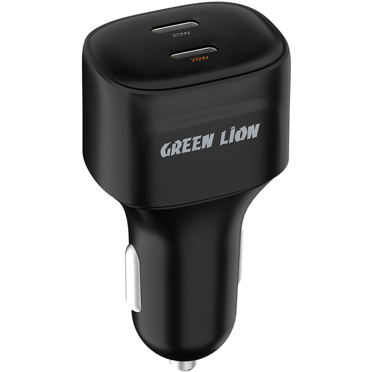 شاحن سيارة Green Lion ثنائي المنفذ USB-C مع شحن متعدد الأجهزة بقوة 45 وات، وحماية من التيار الزائد والدائرة القصيرة، وحماية من الجهد الزائد، وشحن سريع - أسود