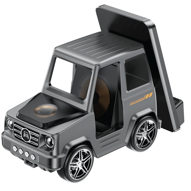 شاحن لاسلكي جرين ليون G-WAG 6 في 1 مع عرض ساعة رقمية ووظيفة منبه، مكبر صوت بلوتوث، شحن لاسلكي بقدرة 15 واط، ضوء جو، إدخال Type-C - رمادي