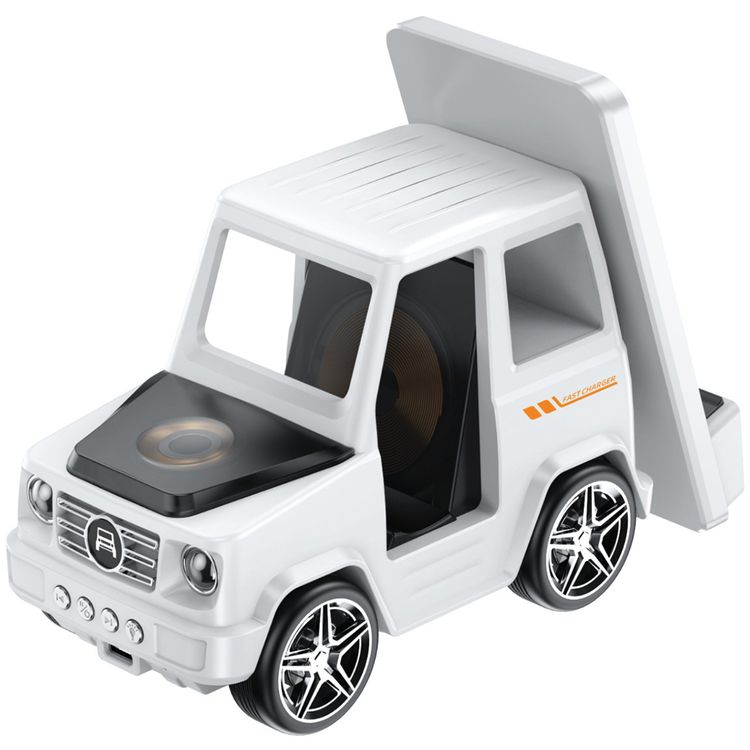 شاحن لاسلكي جرين ليون G-WAG 6 في 1 مع عرض ساعة رقمية ووظيفة منبه، مكبر صوت بلوتوث، شحن لاسلكي بقدرة 15 واط، ضوء جوي، مدخل Type-C - أبيض