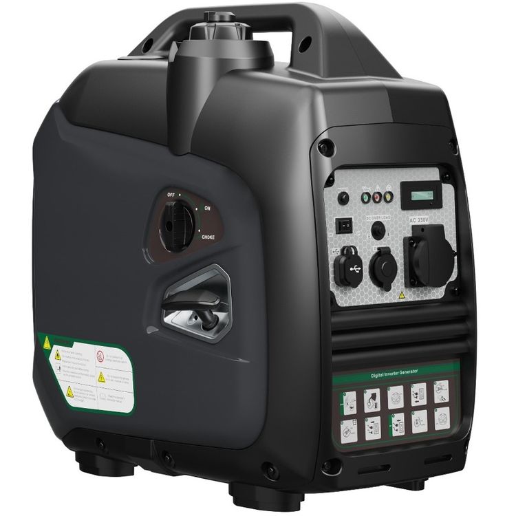 مولد عاكس يعمل بالبنزين من جرين ليون GTR120 بقوة خرج قصوى 2800 وات، وخزان وقود بنزين سعة 5 لتر، ومدة تشغيل 5 ساعات، ومحرك رباعي الأشواط، وسعة زيت 400 مل، وضوضاء منخفضة - أسود