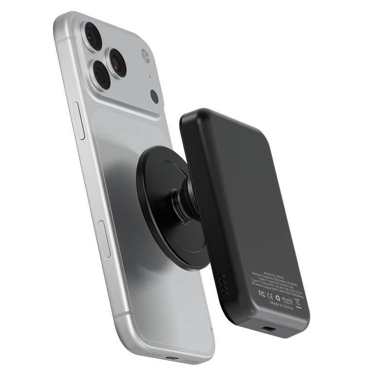 Green Lion Grip Mag بنك طاقة 5000mAh مع PD 30W، متوافق مع MagSafe، مؤشر بطارية LED، تثبيت مغناطيسي آمن، حماية مدمجة، حامل و مقبض بارز، طاقة بحجم الجيب، تصميم فائق النحافة - أسود