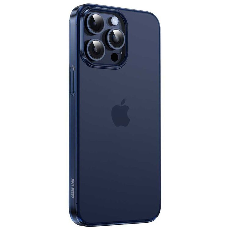 جراب ديلجادو من جرين ليون لجهاز آيفون 15 برو ماكس، مصنوع من مادة البولي كربونات عالية الجودة، مقاوم للخدش والسقوط، تصميم نحيف، مضاد لبصمات الأصابع، وضوح عالي، مضاد للاصفرار، فتحات دقيقة - أزرق