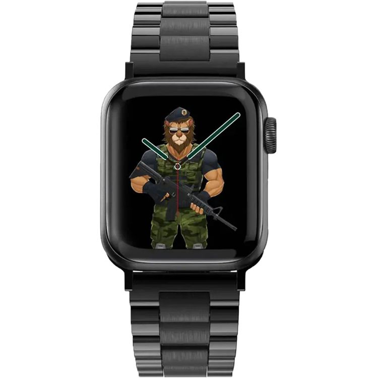 حزام ساعة جرين ليون ميتاليك أسيرو كوريا لساعة أبل 42/44 ملم، مصنوع من الستانلس ستيل، يناسب بشكل مريح، سهل التركيب، حزام معدني قابل للتعديل - أسود