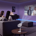Green Lion Nova جهاز عرض محمول ذكي مزود بسماعة مدمجة بقوة 3 واط، وزاوية ميلان وموقف 180°، واتصال سلس، أندرويد 12، تصحيح الانحراف التلقائي، حلقة تركيز دوارة بسهولة، سطوع بقوة 100 لومن ANSI، جهاز تحكم عن بعد، إصدار Bluetooth 5.0، تصميم سهل الحمل، يصل إلى شاشة عرض بحجم 128 بوصة - أبيض