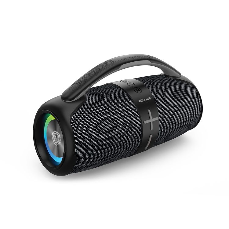 مكبر صوت لاسلكي بارما من جرين ليون، سعة بطارية 1800 مللي أمبير في الساعة، وقت تشغيل 6-7 ساعات، منفذ شحن من النوع C، مقاوم للماء، شاشة رقمية، ضوء RGB وتأثيرات إضاءة متعددة، مسافة بلوتوث 10 متر - رمادي