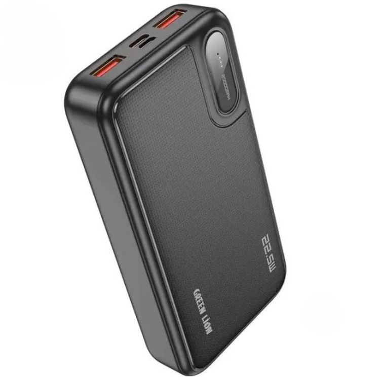 بنك الطاقة Green Lion Power Mate 20000mAh PD 20W، مدخلات Micro وType C، 2 مخرج USB A، مؤشر ضوء LED، محمول - أسود