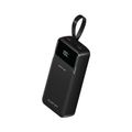 باور بانك باور بانك من جرين ليون، 30000 مللي أمبير، PD 22.5 وات مع كابل شحن سريع، محمول، كابلات مدمجة من النوع C وLightning، حزام جلدي، حماية للشحن - أسود