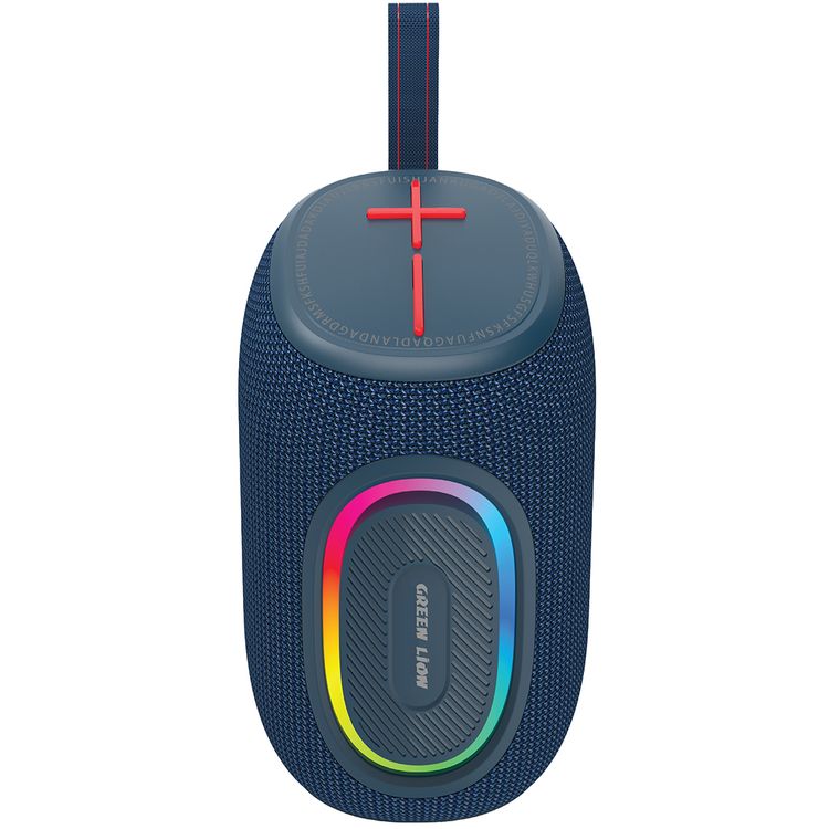 مكبر صوت لاسلكي جرين ليون بريستون برو مع إضاءة RGB، مقاوم للماء بمعيار IPX6، يعمل حتى 7 ساعات، بيس إضافي، راديو FM، سعة بطارية 1200 مللي أمبير - أزرق