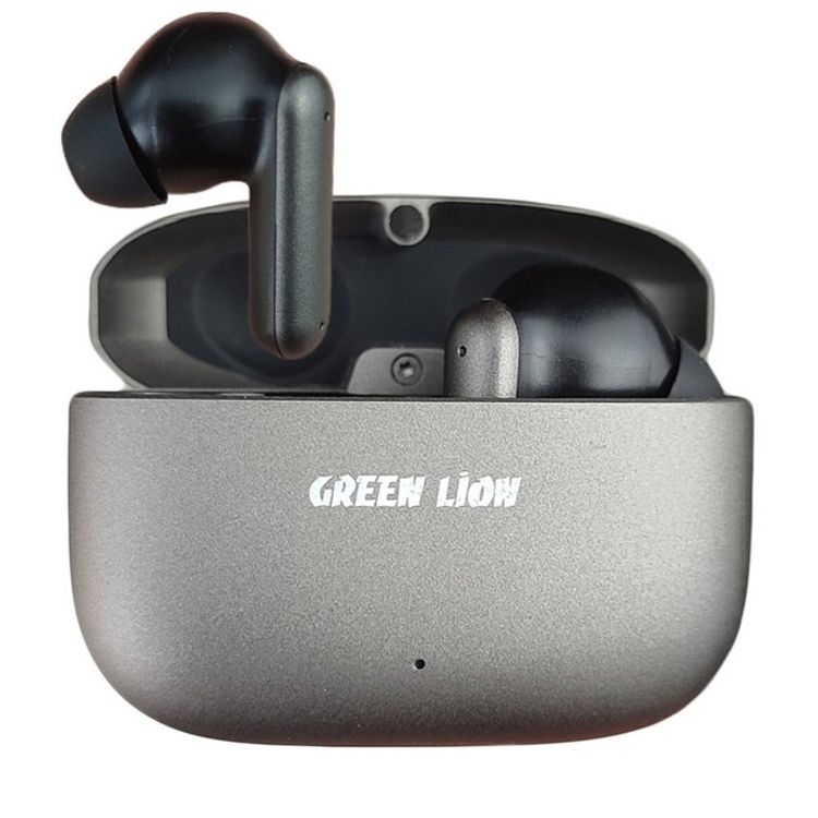 سماعات الأذن ستيريو جرين ليون سانتوريني، وقت تشغيل لمدة 5 ساعات، مادة معدنية عالية الجودة (سبائك الزنك)، سعة بطارية كل سماعة 30 مللي أمبير، حتى 180 ساعة وقت استعداد، سعة علبة الشحن 300 مللي أمبير، التحكم باللمس MFB، إصدار بلوتوث 5.3 - أسود