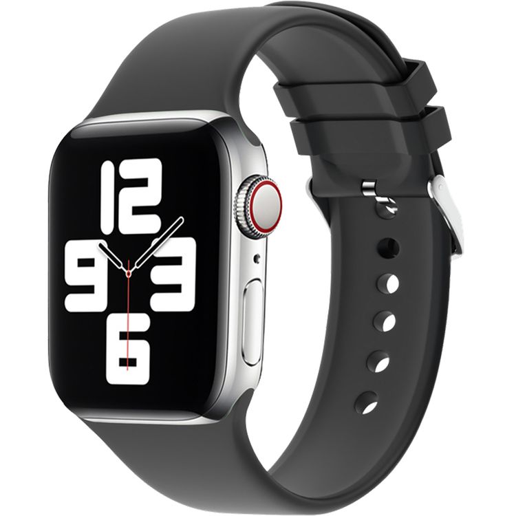 حزام ساعة سيليكون أسود من Green Lion بتصميم مشبك لقفل الساعة لأبل ووتش 44/45 mm، لارتداء مريح، مصنوع من مواد عالية الجودة، بحزام قابل للتعديل.