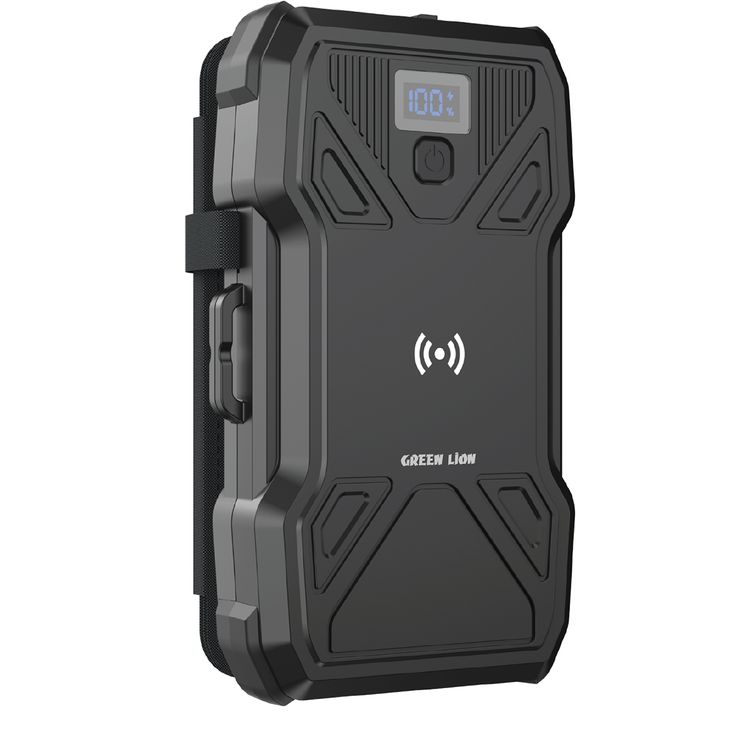 بنك الطاقة Green Lion Solar بسعة 20000mAh مع شاشة عرض بطارية LCD، مقاوم للماء بمعيار IP54، يحتوي على 3 أوضاع LED، شحن سريع QC بقوة 22.5 واط، شحن لاسلكي بقوة 15 واط - أسود.