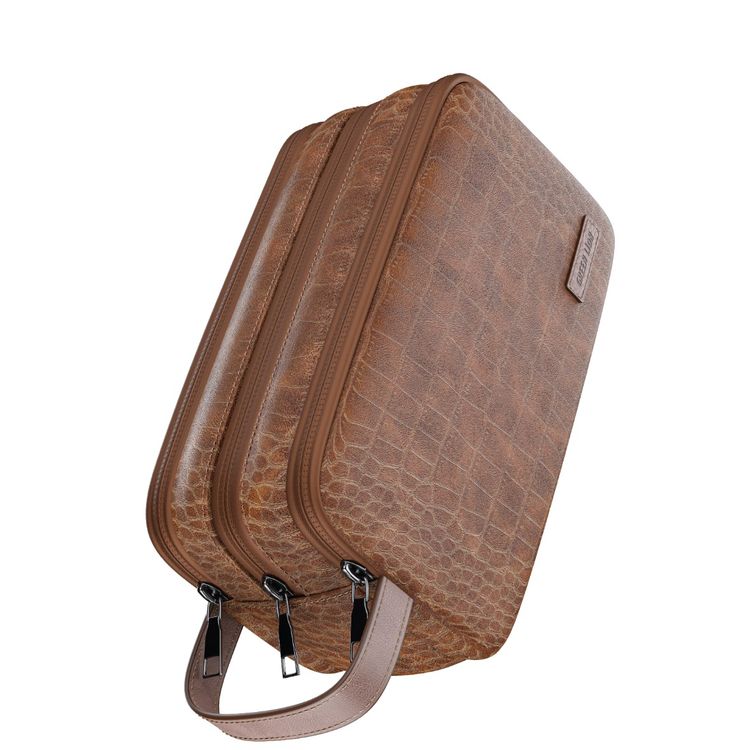 حقيبة يد Green Lion Stallion، تحتوي على 3 حجرات، جيوب شبكية، مقبض متين، داخلية من المايكروفايبر، خارجية من جلد PU مقاوم للماء، سحاب من سبيكة الزنك - بني.