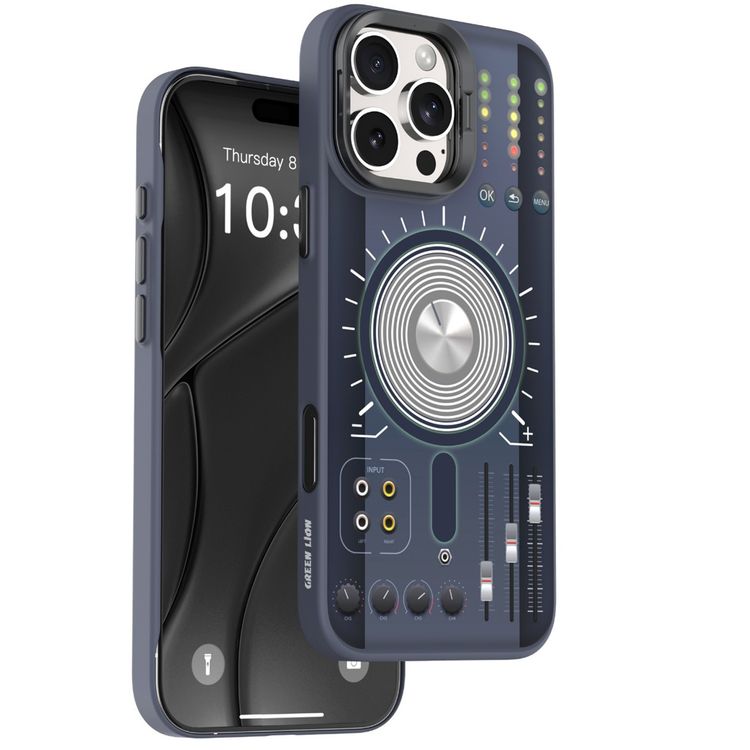 كفر حماية Green Lion Techguard MagSafe لهاتف iPhone 16 Pro Max، رفيع، حامل حماية للكاميرا، عرض بدون استخدام اليدين، حواف مرتفعة، حماية للكاميرا - أزرق