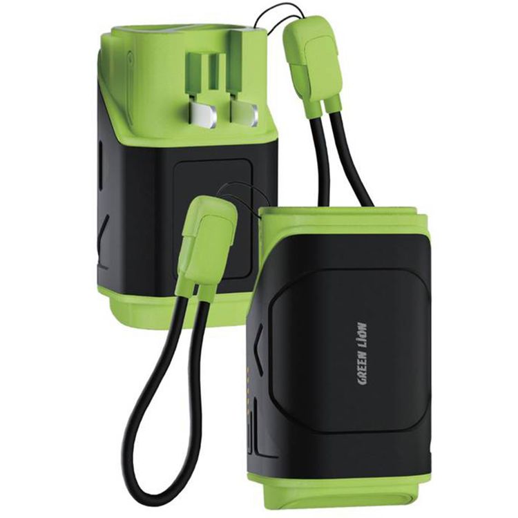 باور بانك تراف-إكس من جرين ليون، مصنوع من مادة البولي كربونات، سعة بطارية 10000 مللي أمبير، قابس تيار متردد قابل للطي، شحن سريع - أخضر زيتوني