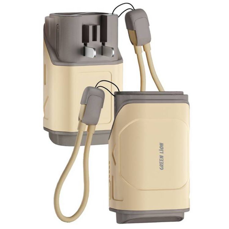 باور بانك تراف-إكس من جرين ليون، مصنوع من مادة البولي كربونات، سعة بطارية 10000 مللي أمبير، قابس تيار متردد قابل للطي، شحن سريع - بيج