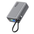 باور بانك Green Lion Tron X بسعة 25000 مللي أمبير مع شاشة طاقة ذكية، منافذ USB-C و USB-A، معتمد للطيران، كابل USB-C مدمج، دعم الشحن السريع - رمادي