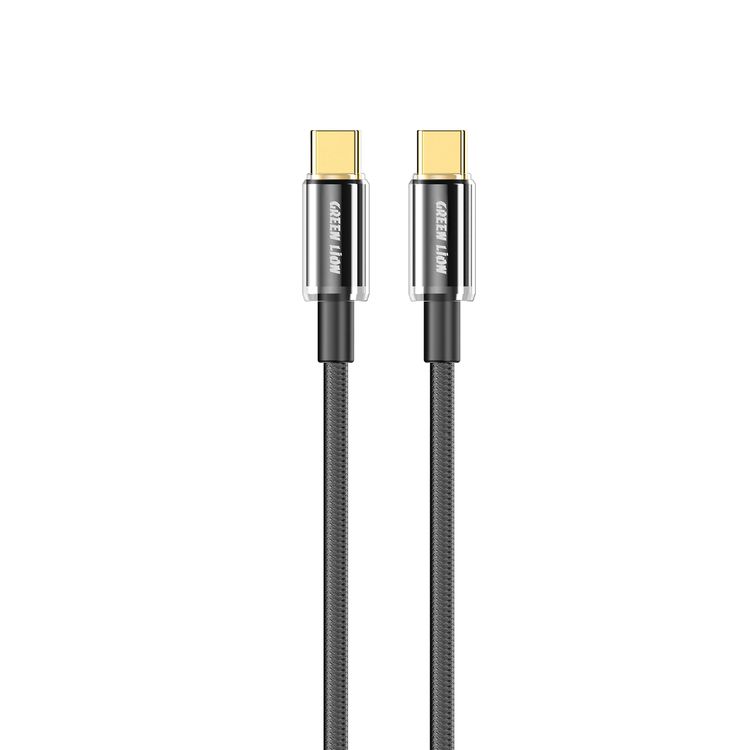 كابل USB-C إلى USB-C Tough من Green Lion، آمن ومضمون، شحن ومزامنة، شحن سريع، شفاف وسبائك ألومنيوم وكابل مضفر 48، طول الكابل 1 متر - أسود