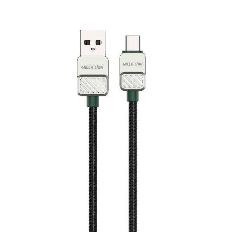 كابل Green Lion من USB-A إلى USB-C مطلي كهربائيًا بتيار 15 واط، طول الكابل 1 متر، مادة خارجية مضفرة، سرعة نقل 480 ميجابت في الثانية، عمر افتراضي لـ 10,000 انحناء - أسود / أخضر