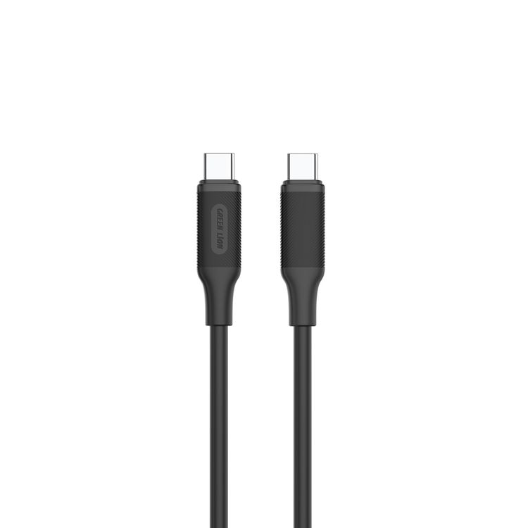 كابل USB-C إلى USB-C PVC Green Lion، عمر افتراضي 10000 انحناء، توافق واسع، شحن سريع، مضمون وآمن، طول الكابل 2 متر - أسود