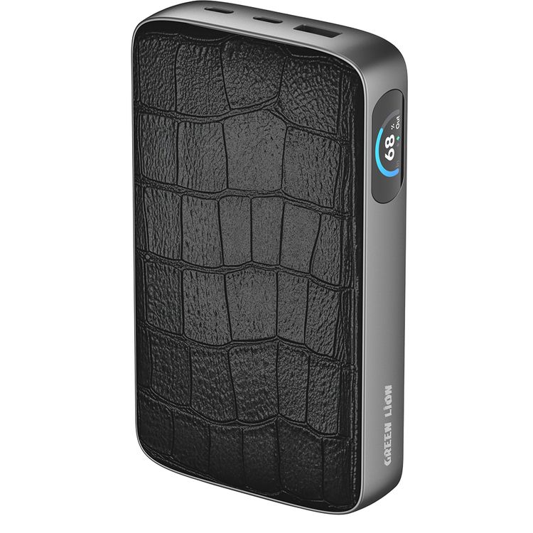 باور بانك جرين ليون VALMONT بسعة 20000 مللي أمبير بالساعة مع جلد PU فاخر، شحن سريع 100 واط PD، معتمد للسفر، شاشة TFT، مخرج USB-A QC18W - لون أسود