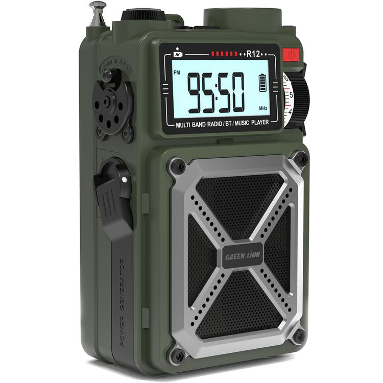 Green Lion Vintage Solar Pro Radio & Bluetooth Speaker with Power Bank, 12 Hours Playtime, 10m Transmission Range, 70 Lumens Flashlight, Hand Crank Charging, Micro SD & USB Playback - أخضر