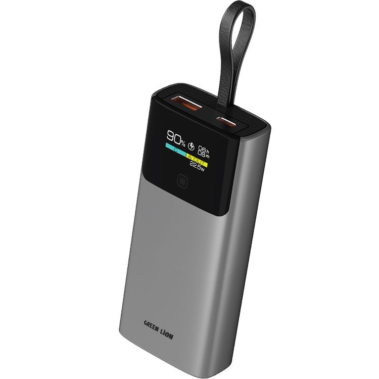 بنك طاقة جرين ليون فولتكس بسعة 10000 مللي أمبير مع شاشة TFT، تصميم رائع، حزام كابل Type-C، شحن سريع، تصميم خفيف الوزن، إجمالي قوة 22.5 واط - رمادي