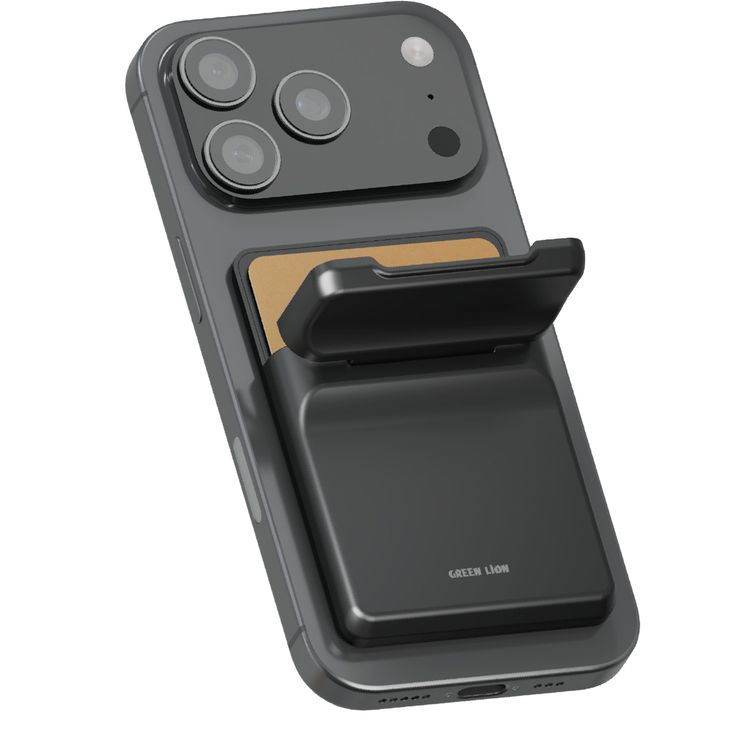 محفظة جرين ليون W3-MagSafe مع حامل بطاقات، مسند طي للخارج، تركيب وفك سريع، حماية RFID، تصميم نحيف، مسند طي للخارج - لون أسود