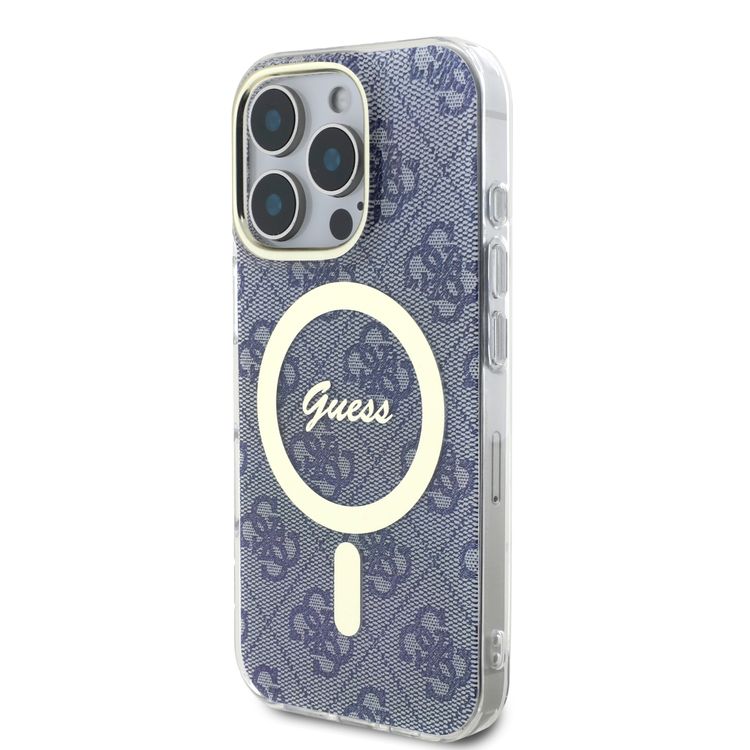كفر حماية Guess MagSafe 4G Design HD Printing PC & TPU لهاتف iPhone 16 Pro Max، خفيف الوزن، خامة عالية الجودة، حماية من السقوط - أزرق