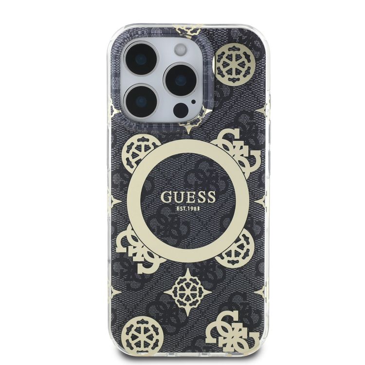 كفر حماية Magsafe IML 4G صلب بتصميم Guess مع زهرة الفاوانيا لهاتف iPhone 16 Pro Max، مادة عالية الجودة، خفيف الوزن، قبضة مريحة وآمنة - أسود