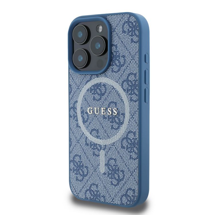 جراب هاتف ماجسيف PU بتصميم شعاري كلاسيكي لأيفون 16 برو ماكس، يوفر حماية من السقوط، سهل التركيب، تصميم نحيف وخفيف الوزن، متوافق مع شحن MagSafe اللاسلكي - أزرق