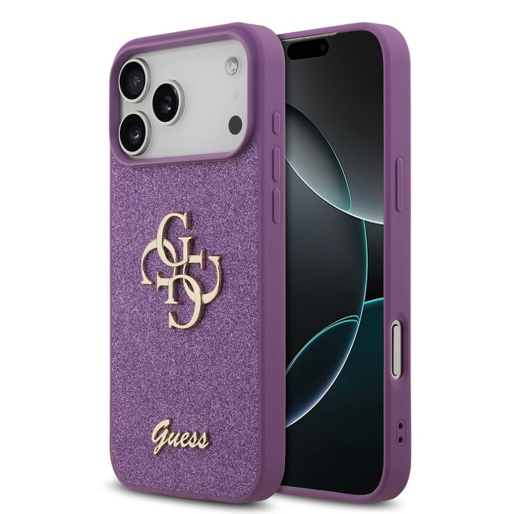 غطاء لامع من PU من Guess بشعار معدني كبير 4G لجهاز iPhone 17 Pro، حماية من السقوط، تصميم نحيف وخفيف الوزن، سهل التركيب، تغليف مستدام، قبضة مريحة - لون أرجواني فاتح