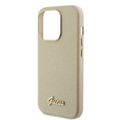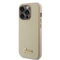 حافظة Guess PU لامعة مع شعار Guess Script - ذهب - iPhone 15 Pro