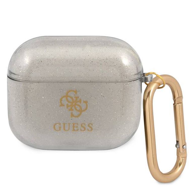 جراب Guess اللامع الملون لسماعات AirPods 3، TPU، حماية من السقوط، سهل التركيب، مقبض عملي للتثبيت - أسود