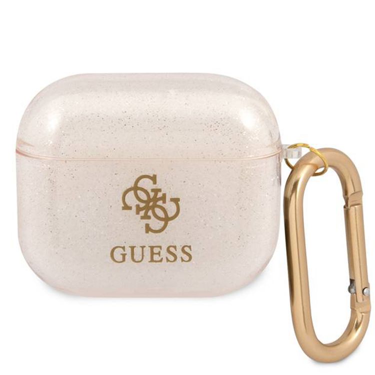 جراب Guess اللامع الملون لسماعات AirPods 3، مصنوع من TPU، حماية من السقوط، سهل التركيب، مقبض عملي للتثبيت - ذهبي