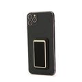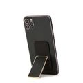 مقبض وحامل مطليان بالكهرباء من الجلد الناعم ، أزواج مع أي هاتف ذكي ، مسند متعدد الوظائف متوافق مع الشحن اللاسلكي - أسود / ذهبي