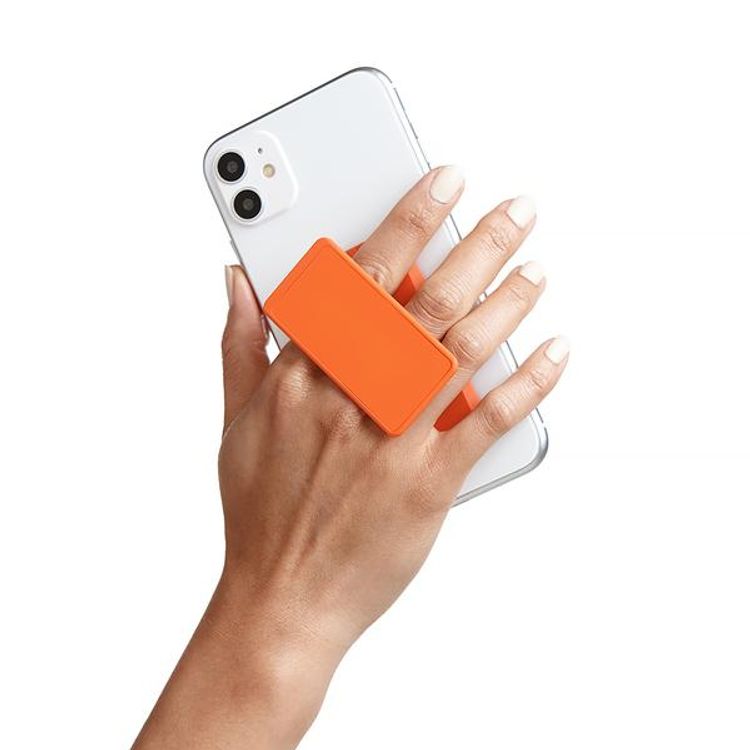 هاندل قبضة هاتف صلبة ، أزواج مع أي هاتف ذكي ، مسند متعدد الوظائف ، متوافق مع الشحن اللاسلكي ، قبضة الهاتف والحامل - برتقالي لامع