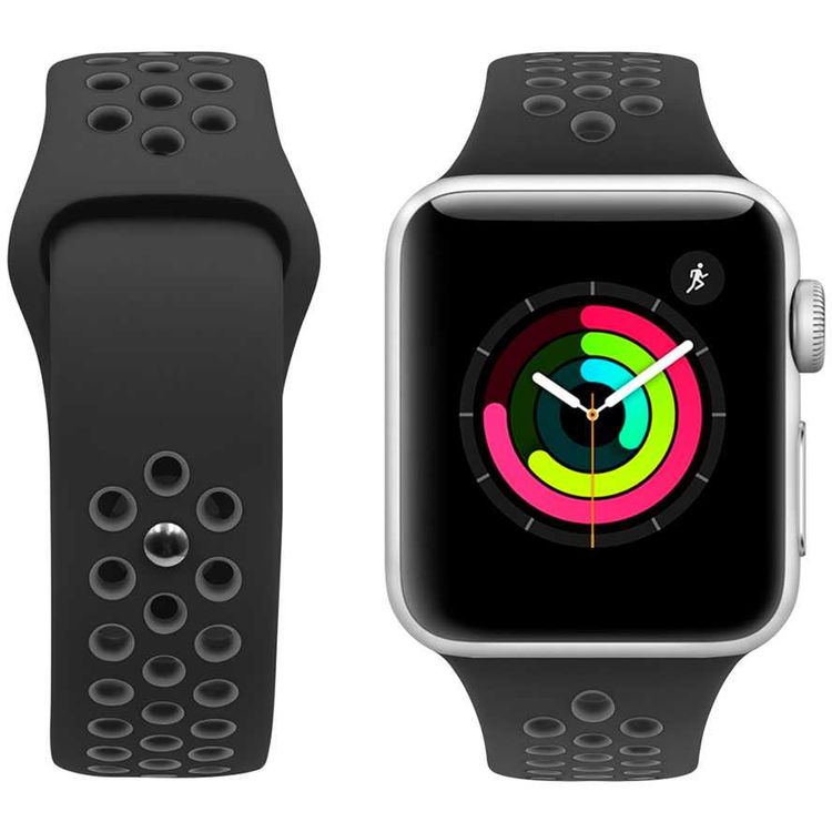 ايجارد من ساعة بورودو نايكي حزام لساعة ابل ، سوار بديل مريح ومناسب ، أشرطة قابلة للتعديل متوافقة مع ساعة ابل 44ميلي / 42ميلي - أسود / رمادي