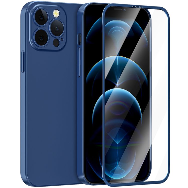عبوة حماية 2 في 1 من جرين ليون كارساكا بلس مع غطاء وحامي شاشة شفاف لجهاز آيفون 13 برو ماكس، مضاد لبصمات الأصابع، مادة PC، حماية 360°، مقاوم للخدش - اللون الأزرق.