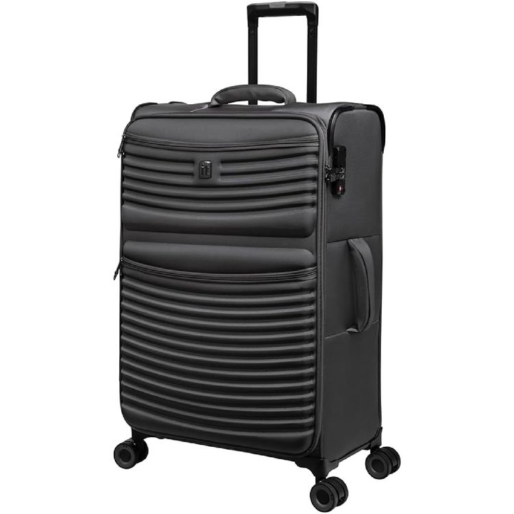 حقيبة سفر خفيفة الوزن وناعمة للجنسين من it Luggage Precursor، حقيبة سفر قابلة للتمدد من البوليستر مع 8 عجلات دوارة ومقبض تلسكوبي وقفل TSA - متوسطة / فحمية