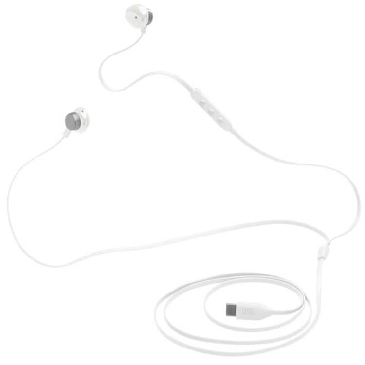 سماعات JBL Tune 305C USB-C سلكية داخل الأذن عالية الدقة، متوافقة مع أجهزة USB-C، محول رقمي إلى تناظري، إعدادات مسبقة للمعادل - أبيض