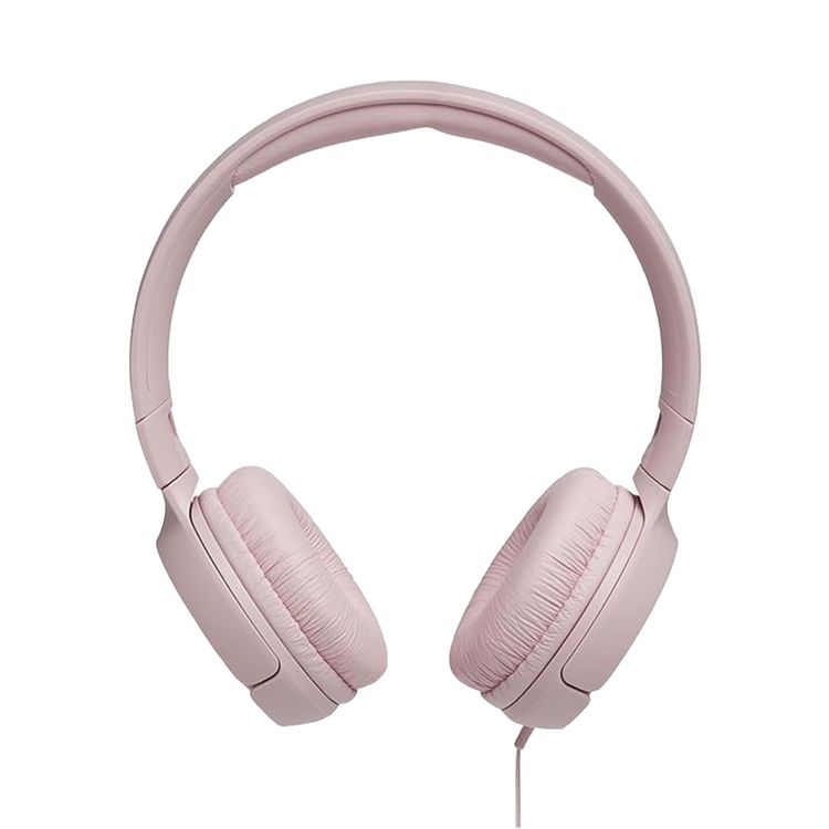 سماعة جي بي ال تيون 500 سلكية على الاذن مع ميكروفون مدمج، صوت جهير نقي، تصميم خفيف الوزن وقابل للطي، جهاز تحكم عن بعد بزر واحد/ميكروفون - وردي