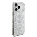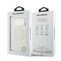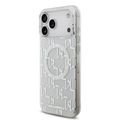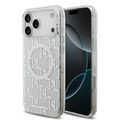 كفر كارل لاغرفيلد ماجسيف IML بتصميم مكرر لشعار كارل مطلي بالكهرباء لجهاز آيفون 17 برو ماكس، بروفايل نحيف، حماية من السقوط، سهل التركيب، تغليف مستدام، مسكة مريحة، تصميم خفيف الوزن - أبيض