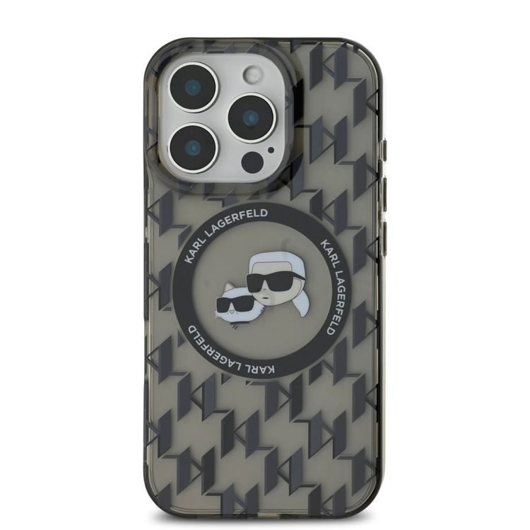 جراب Karl Lagerfeld Magsafe IML الصلب لهاتف iPhone 16 Pro مع رؤوس Karl & Choupette، تصميم نحيف، سهل التركيب، حماية من السقوط، متوافق مع Magsafe، تغليف مستدام - أسود