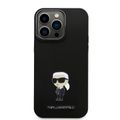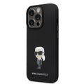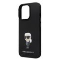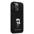 حافظة كارل لاغرفيلد الصلبة من السيليكون مع شعار Ikonik NFT ودبوس معدني لهاتف iPhone 15 Pro - أسود