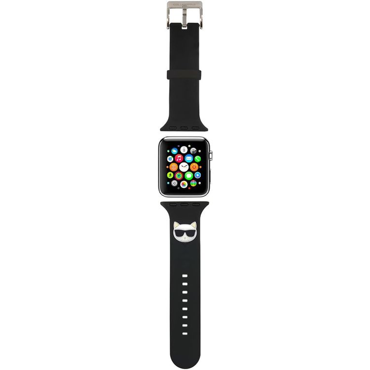 حزام سيليكون من كارل لاغرفيلد بشعار رأس شوبت. متوافق مع 38/40 ملم - أسود