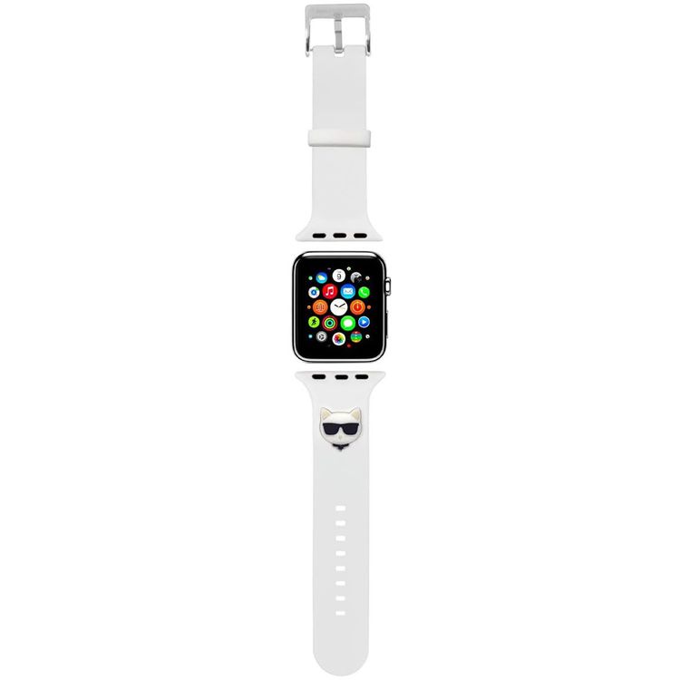 حزام سيليكون من كارل لاغرفيلد مع شعار رأس تشوبيت. متوافق 42/44 ملم - أبيض
