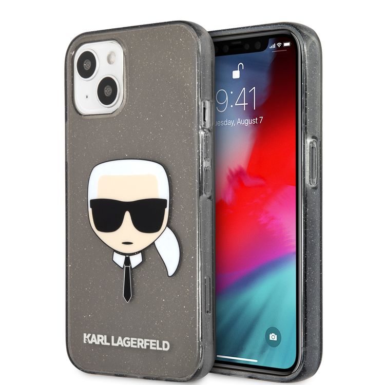 جراب كارل لاغرفيلد تي بي يو لامع كامل لهاتف آيفون 13 (6.1) -أسود
