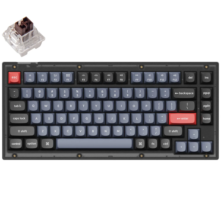 Keychron V1 ANSI 75% Layout 84 Key Full Assembled With Knob & Brown, Red Switch RGB Hot-Swap Gateron G pro Mechanical Wired Normal Profile QMK Custom - Frosted Black