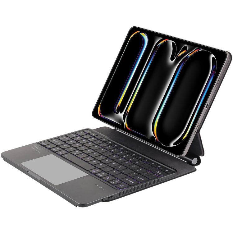 لوحة مفاتيح لاسلكية من جلد سافيانو Levelo AeroBoard Pro لجهاز iPad Pro 13" 2024، بتشطيب من الفولاذ المقاوم للصدأ والمطاط، سعة بطارية 500 مللي أمبير، واجهة شحن Type-C، تصل إلى 320 ساعة عمل، سبعة أوضاع إضاءة ملونة - أسود