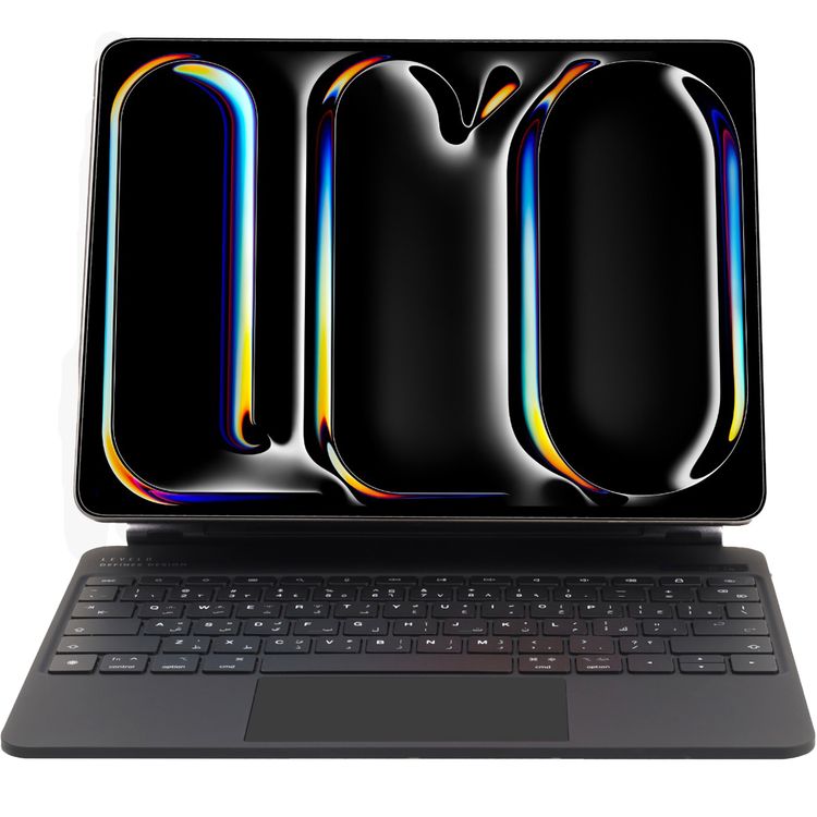 لوحة مفاتيح لاسلكية من الجلد من Levelo AeroBoard Saffanio لجهاز iPad Pro 11" 2024، زاوية قابلة للتعديل حتى 130 درجة، تصميم متوهج محيطي، لوحة لمس مدمجة، 500 مللي أمبير في الساعة - أسود
